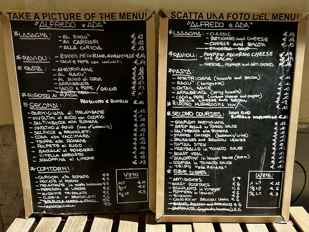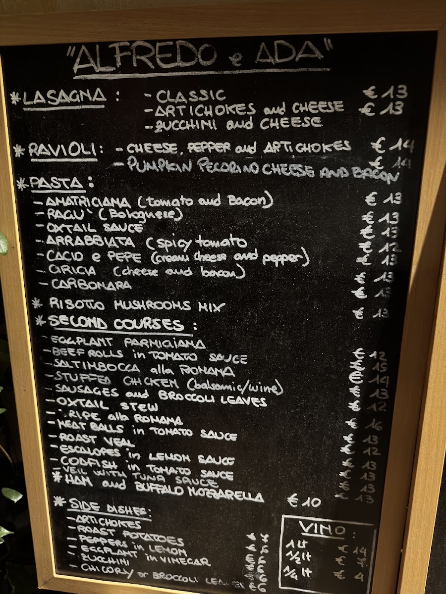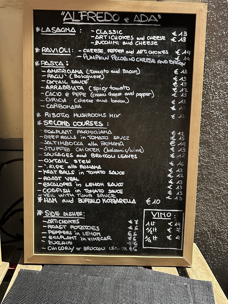 Alfredo e Ada Menu